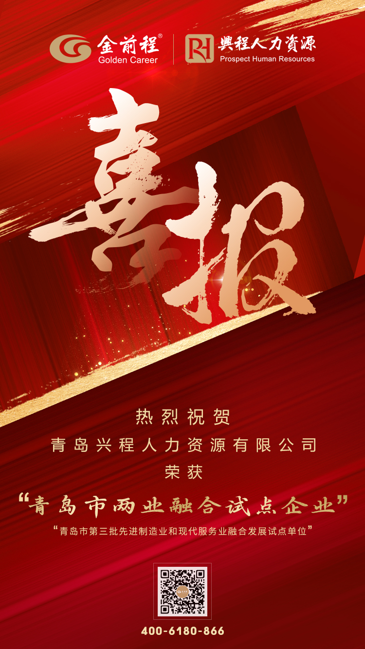 热烈祝贺金前程旗下青岛兴程人力资源有限公司,成功入选“青岛市第三批先进制造业和现代服务业融合发展试点单位”!